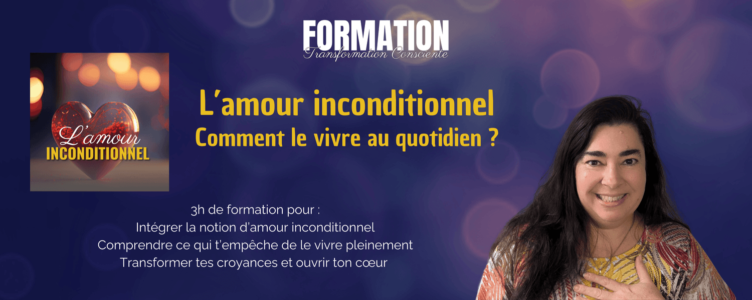 Si tu as l'impression que tu n'arrives pas à mettre en pratique les conseils pour vivre l'amour inconditionnel dans ton quotidien, c'est que ton ego résiste car tes blessures sont trop fortes. Dans ce cas je te conseille la formation "chemin de guérison" ou de prendre une consultation avec moi pour découvrir les croyances qui te bloquent.