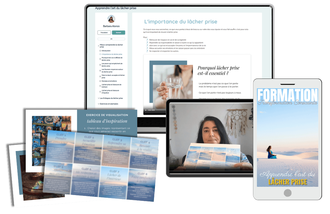 C'est une formation en autonomie faite de vidéos avec des notions, des exemples, des exercices, des méditations, des questions d'introspection, des clefs pour mettre en pratique.